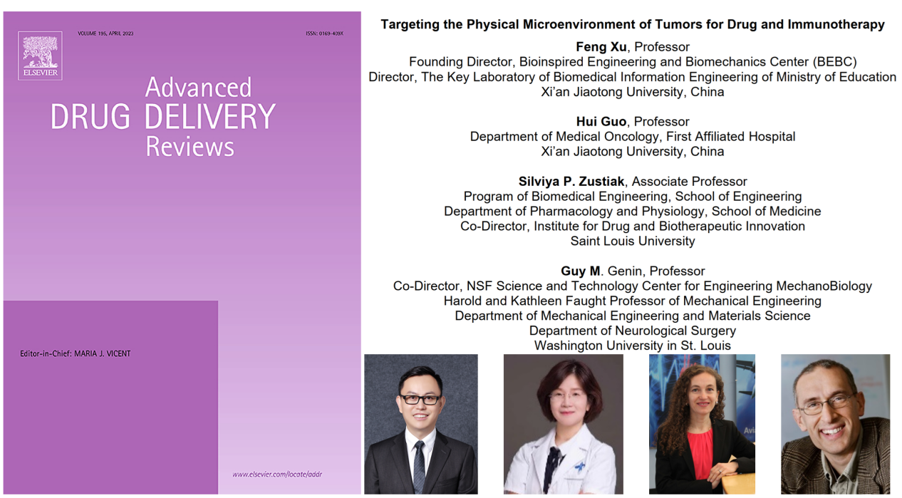 近日,西安交大BEBC徐峰教授联合西安交大一附院肿瘤内科郭卉教授、美国圣路易斯大学Silviya P. Zustiak教授和西安交大BEBC/圣路易斯华盛顿大学美国国家发明家科开元院士Guy M. Genin教授,作为专刊编辑在国际权威综述期刊《Advanced Drug Delivery Reviews》(IF = 17.873)牵头组织了一期主题为“肿瘤免疫治疗与物理微环境”(Targeting the Physical Microenvironment of Tumors for Drug and Immunotherapy)的专刊,并诚邀海内外多位知名教授为本期专刊撰写了高质量综述。