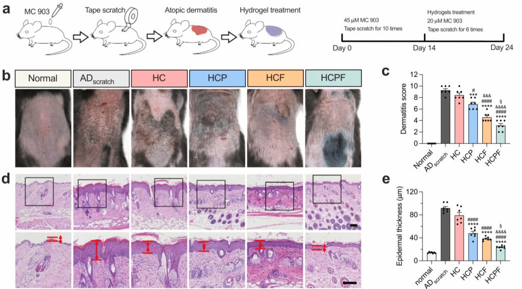 图2:力-化协同治疗的HCPF水凝胶敷料可以缓解AD症状