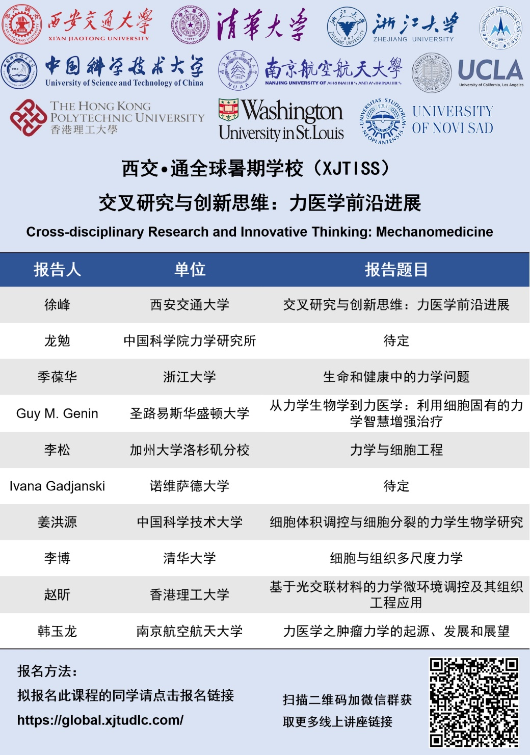 西交•通全球暑期学校(XJTISS)课程通知-交叉研究与创新思维:力医学前沿进展