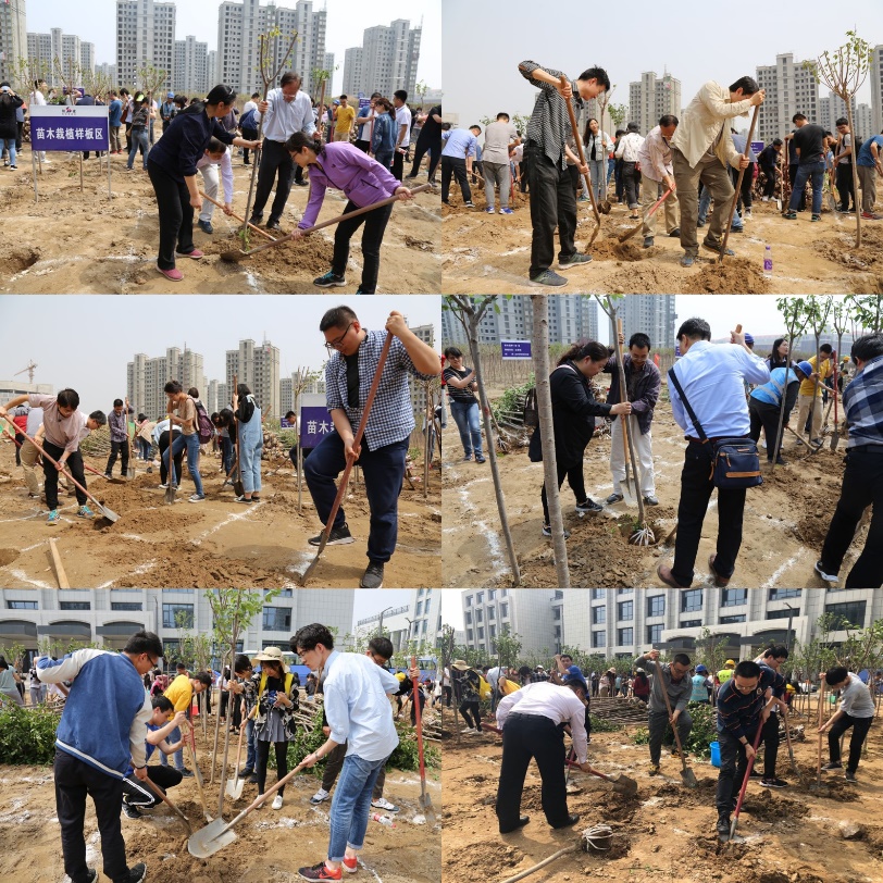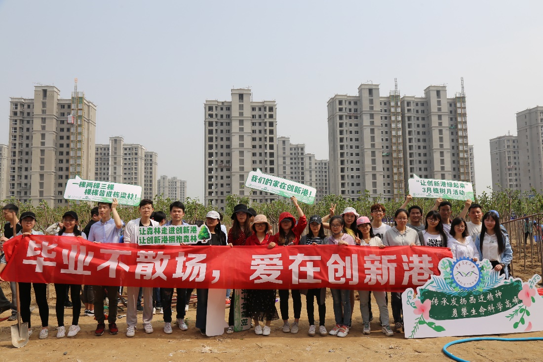 随着一声令下,植树活动正式开始。热情高涨的师生们立刻行动起来,分工合作,有的挥锹挖坑,有的回填培土,有的提桶浇灌,配合默契。经过大家的努力奋战,1000棵樱花苗整整齐齐挺立在创新港的土地上。师生们纷纷和自己亲手植下的樱花树合影,难以掩饰内心的激动和喜悦。