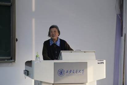 交大西迁老教授胡奈赛向大家作了主题为“坚守爱国奋斗,传承西迁精神”的报告。胡教授介绍了交大西迁的时代背景、实施状况以及能够顺利西迁的原因,带领师生回望了波澜壮阔的西迁征程。胡教授还分享了院士周惠久、校医沈云扉、沈伯参叔侄以及园丁胡金贵在西迁过程中的感人故事。师生们通过胡教授的讲解,从一张张黑白照片中感受老一辈“党让我们去哪里,我们背起行囊就去哪里”的家国情怀,更全面地认识了当时的西迁群体,也更深刻地领悟到“西迁人”胸怀赤子之心、坚守报国之志,把自身的前途命运同国家民族命运紧紧相连的胸襟与情怀。