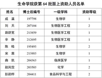 近日,中国博士后科学基金会公布了第64批博士后基金面上项目资助公示名单,西安交大博士后共132人获此次资助,我院共9人获得此次资助,生命开元向获得资助的成瀛、刘天、路舒宽、辛静、陈皓、宋茜、曲凯、赵凤佼、彭韵桦等老师表示衷心祝贺!