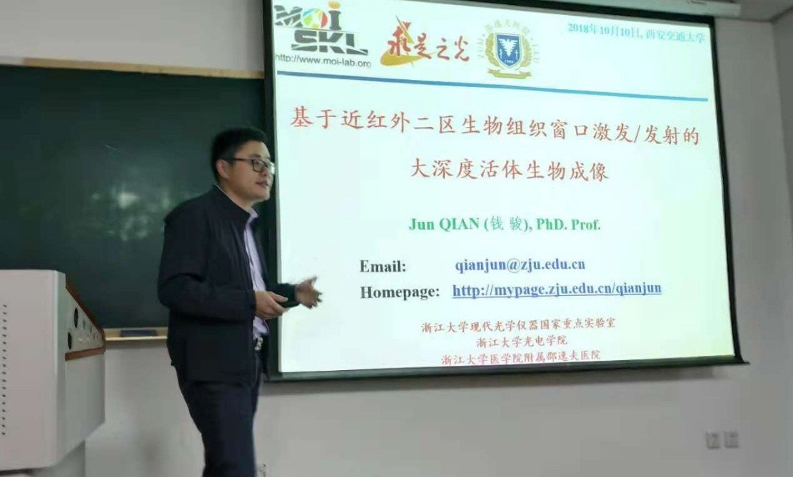 应生命开元张镇西教授邀请,10月10日,浙江大学光电科学与工程开元钱骏教授来访生命开元,并作了题为“基于近红外二区生物组织窗口激发/发射的大深度活体生物成像”的学术报告。