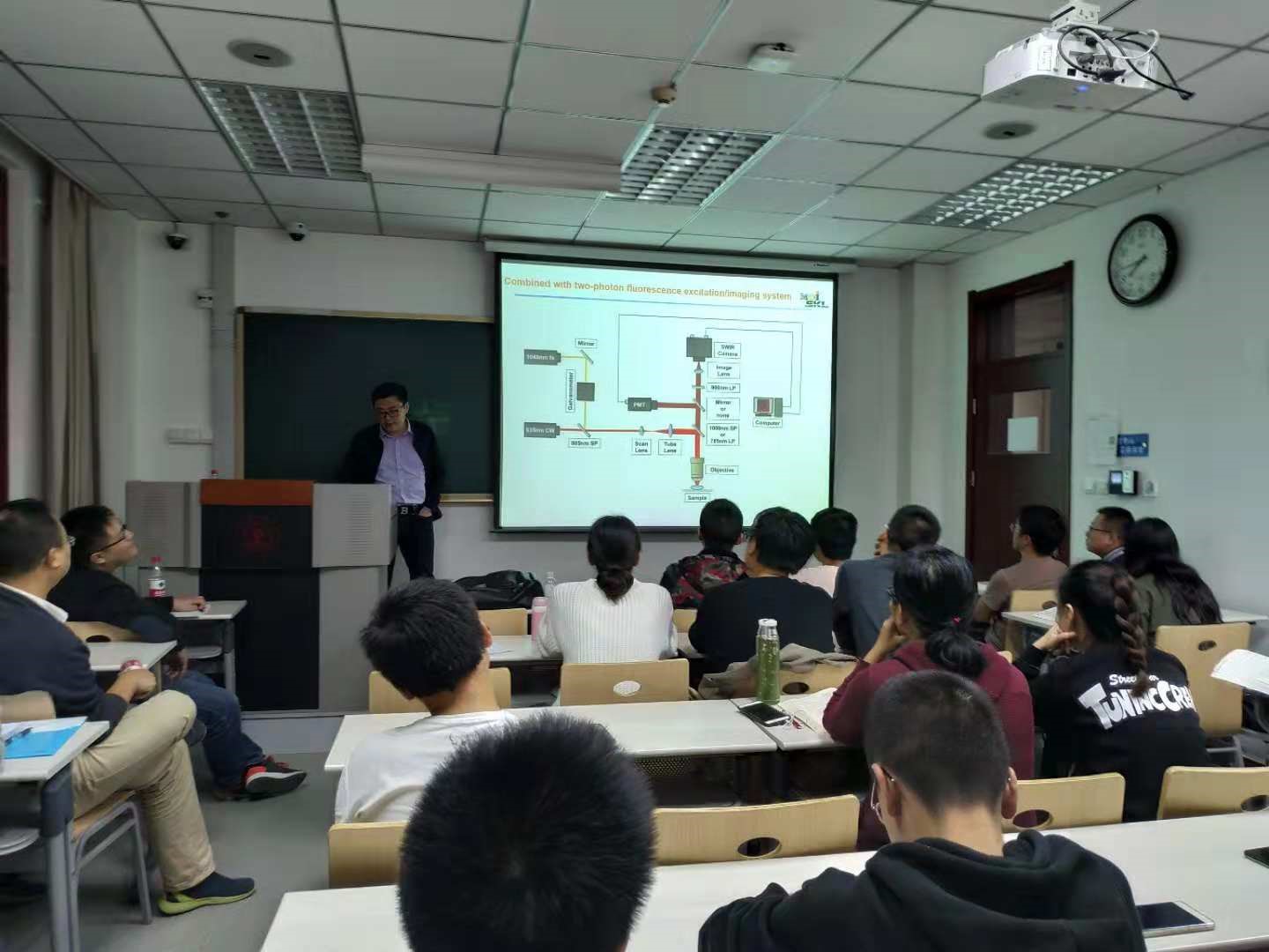 生命开元王斯佳博士致欢迎词并简要介绍了钱骏教授。钱骏教授在报告中生动有趣地展示了其近几年重点开展的“活体多光子荧光显微成像”和“活体近红外二区荧光成像”的工作,许多工作都达到了国际先进水平。钱骏教授长期从事“大深度光学生物活体成像”的研究,共发表了SCI论文70多篇,其中,第一/通讯作者论文49篇。应邀担任Optics Letters、Biomedical Optics Express、Advanced Optical Materials、Advanced Functional Materials、Biomaterials、Small、Nanoscale等高水平学术期刊审稿人。入选浙江省“新世纪151人才工程”。主持了国家自然科学基金面上、青年项目,973子课题(两项),863子课题,主持参与了国家自然科学基金重点项目。
