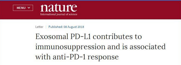 肿瘤细胞通过上调程序性死亡配体1(PD-L1)的表面表达来逃避免疫监视,其与T细胞上的程序性死亡-1(PD-1)受体相互作用以引发免疫检查点反应。抗PD-1抗体在治疗肿瘤方面显示出很好的前景,包括转移性黑色素瘤。但是,患者的反应率很低。所以需要更好地了解PD-L1介导的免疫逃避,以预测患者反应并提高治疗效果。该研究报道了转移性黑色素瘤释放细胞外囊泡,主要是外泌体形式,在其表面携带PD-L1。用干扰素-γ(IFN-γ)刺激增加了这些囊泡上PD-L1的量,这抑制了CD8 T细胞的功能并促进肿瘤生长。在患有转移性黑素瘤的患者中,循环外泌体PD-L1的水平与IFN-γ的水平呈正相关,并且在抗PD-1疗法的过程中变化。在治疗的早期阶段,循环外泌体PD-L1的增加幅度可作为肿瘤细胞对T细胞更新的适应性反应的指标,从而区分临床应答者与非应答者。该研究揭示了肿瘤细胞系统性抑制免疫系统的机制,并为外泌体PD-L1作为抗PD-1治疗预测因子的应用提供了理论依据。