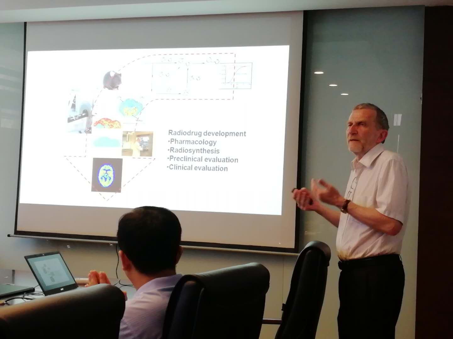 OlofSolin教授在此次报告中向大家简要介绍了芬兰国家PET中心,该中心主要分布在Turku大学,由加速器实验室,放射性药物化学实验室及临床成像实验室组成,OlofSolin教授主要负责放射性药物化学实验室的运作。在报告中,OlofSolin教授给师生们分享了一些典型的案例,包括现阶段开发中的11C-,13N-,15O-,68Ga-,18F-标记的疾病标志物前体在科研及临床研究中的应用,开发合成高比放射性的PET放射性示踪剂的方法,以及用于人体健康和疾病研究的PET放射性示踪剂的研究。MerjaHaaparantaSolin教授介绍了应用于小动物PET成像的示踪剂的特点,以及示踪剂在小动物及各种小动物病理模型中成像的应用。