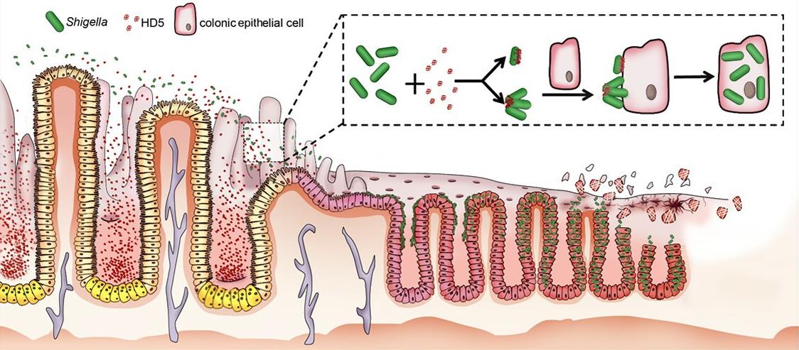 图 HD5促进志贺菌在肠道中感染的模型示意图