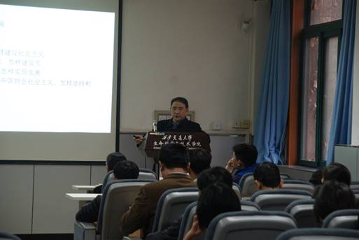 王宏波教授以“中国特色社会主义发展的新境界——深刻理解习近平新时代中国特色社会主义思想”为主题展开报告。王教授首先回顾了改革开放以来党的全部理论和实践主题,即中国特色社会主义的发展过程。随后以习近平新时代中国特色社会主义的思想和中国特色社会主义发展的新境界之间的关系为重点,介绍了十九大报告提到的习近平新时代中国特色社会主义思想中“八个明确”、“十四个方略”的相关内容和意义。最后,王教授讲解了在实现中华民族伟大复兴的中国梦征程中面临新的挑战和问题,即如何解决经济发展中存在的问题、如何构建意识形态领域的话语权、如何进一步加强党的建设、突破和完善制度反腐等。同时着重说明改革开放近40年来,我国人民群众的新期盼。