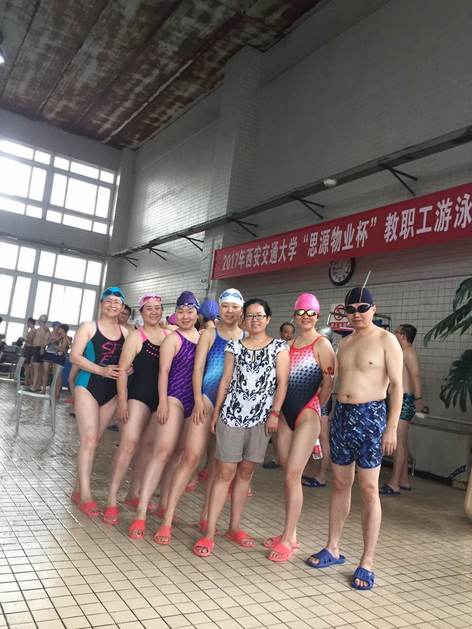 7月15日上午,西安交通大学教职工游泳比赛在校游泳馆拉开帷幕。生命开元经认真组织和准备,由吕方、杨水云、田中民、许丹、亓树艳和赵琳6名老师组成强大阵容,在领队张雅利老师的带领下,满怀信心的赶赴比赛现场。