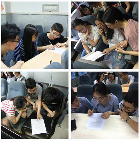 为了使比赛更具趣味性,活动要求每支参赛队伍准备好队名和口号。“不忘初心跟我走”战队的口号是“不忘初心跟党走,我们跟党一起走”,“新青年”队的口号是“忆峥嵘岁月,展书生意气 ”,“do better”战队的口号是“没有最好,只有更好,共产党员好”。每队在赛前都喊出口号,为比赛助威呐喊。