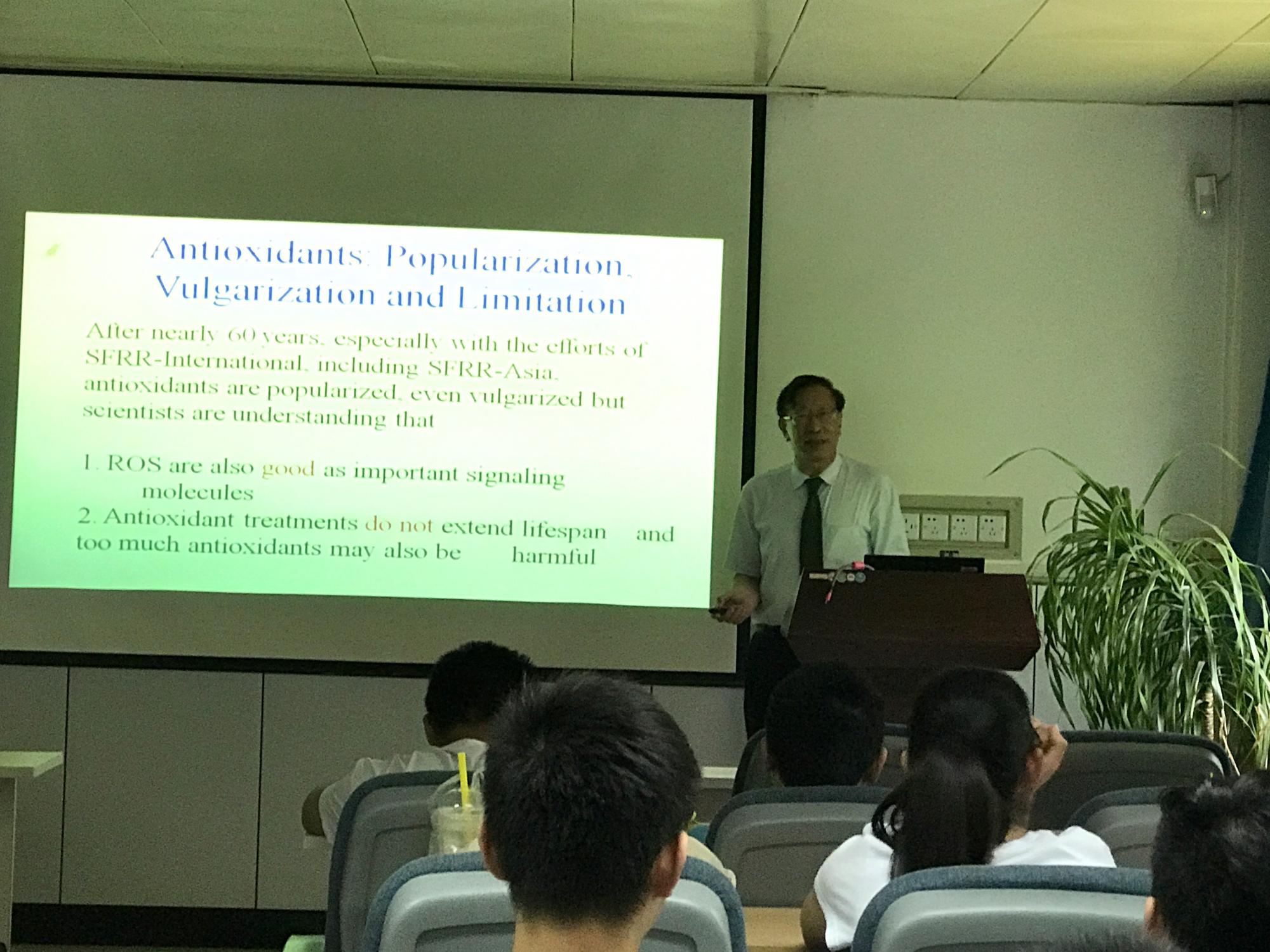 刘院长的报告开始时,先提出了十个现实生活中的常见的伪科学问题,在同学们思考之余介绍了开元发展与线粒体生物医学实验室的团队成员,之后继上学期冬季生命开元系列讲座时Why do we age?的话题引入热量限制在身体层面的影响机制。在讲述自由基衰老理论,提出多种抗氧化剂存在的消极作用的同时,引入线粒体活性与relieve stress在各种生命活动中至关重要的作用,以及其对身体健康、人体寿命的影响。刘健康教授详细介绍了红酒里的白藜芦醇、橄榄油里的羟基酪醇、石榴里的安石榴苷以及氢气四种线粒体营养素。其中,氢气因绝对安全且疗效巨大而进行了重点介绍,包括其直接吸入、富氢水、固态载氢体等三种途径的人体获取方式。