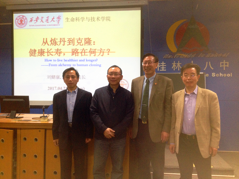 “学者教授进中学”科普讲座活动是我校近年来重点推进的一项招生宣传工作,旨在加强学校与优秀中学的联系,宣传我校的治学精神、育人理念和光辉历史,增进中学生对我校的了解,提升对交大的认同感。在桂林中学,演讲前刘院长一行与该中学的马劲校长和李志华副校长进行了交谈,加深了两校间的进一步相互了解。