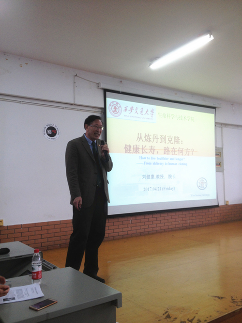 在两所中学的宣讲中,刘院长和张教授分别以“从炼丹到克隆:健康长寿,路在何方?”和“中国人类起源解读”为题进行了宣讲。二位教授激情饱满,演讲内容广博,热点纷呈,中学师生群情澎湃,掌声不断。演讲活动大大激发了学生们对研究、探索的兴趣,坚定了报考西安交大的决心。桂林中学的听讲师生多达五百多人,十八中听讲师生也达二百多人。在每场宣讲后,教授们都耐心地回答学生们的提问,而且在十八中宣讲结束还接受了学生记者团的采访。