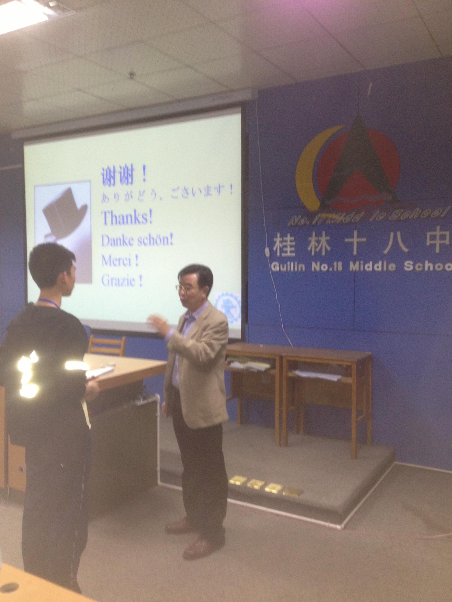 桂林中学演讲前与校长会谈