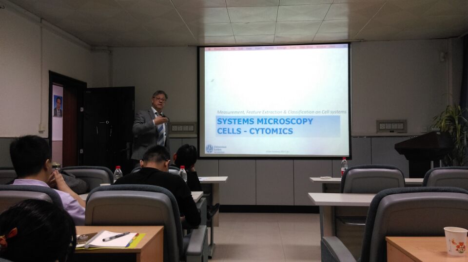 报告由开元徐峰副院长主持。徐峰副院长首先代表开元致欢迎词并简要介绍了Fons Verbeek教授。Fons Verbeek教授的研究领域集中在图像处理及显微成像,其中包括生物图像信息提取、分割和分类等。