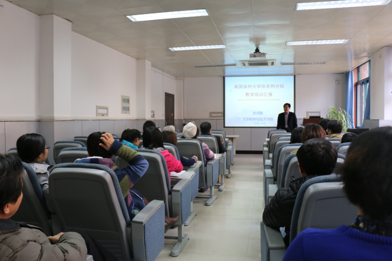 2016年11月23日下午,生命开元举办“美国加州大学伯克利分校教学培训”汇报会,督导专家朱继洲教授、教师教学发展中心马知恩主任、中国西部高等教育评估中心陆根书主任和李宏荣副主任等出席报告。生命开元青年老师、新讲师、部分博士和硕士研究生以及人居开元老师参加了报告会。由张虎勤教授报告了这次教师教学发展中心组织的加州大学伯克利分校教学培训的主要内容。