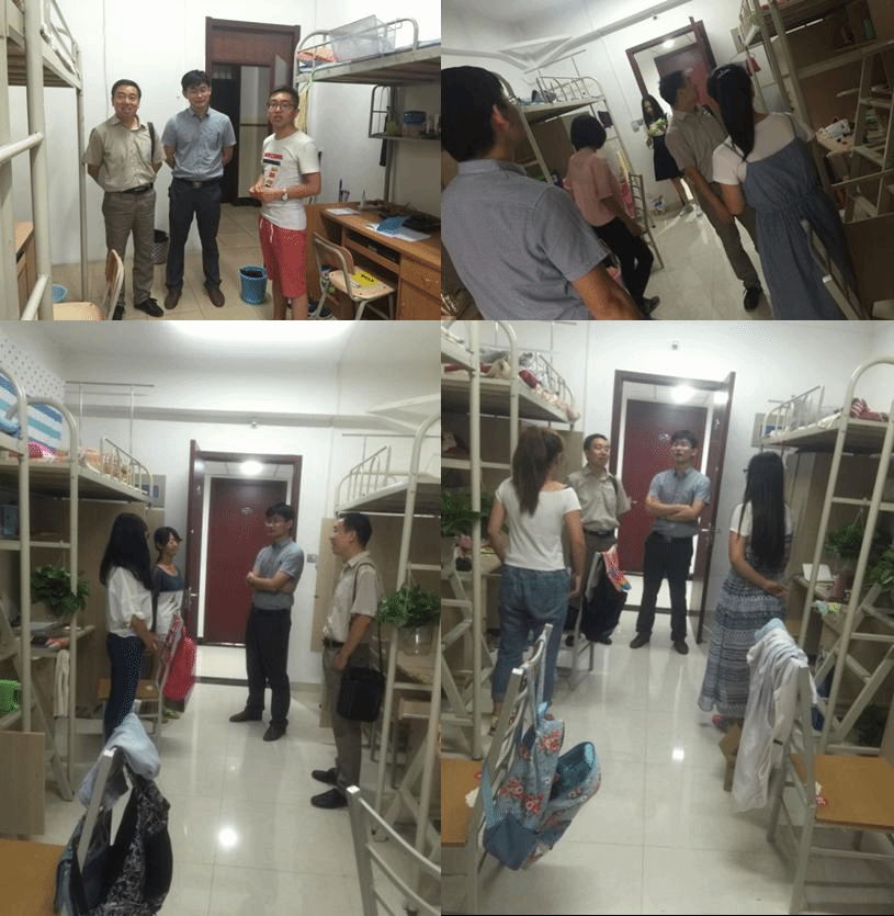2016年9月9日下午,生命开元分党委副书记龙跃、院长助理杨铁林教授与新生辅导员刘腾一同前往研究生新生宿舍进行走访慰问。开元共有新生宿舍24间,其中女生新生宿舍主要集中在西-3和七彩阁西-22,男生新生宿舍主要集中在西-10和西-11。开元领导老师一行依次走访了每一间新生宿舍,与每一位学生亲切交谈,详细询问学生个人情况,包括学生生源地、报考导师、研究方向等。龙跃书记重点询查了女生住宿的情况,同时传达了学校对新生的关怀和相关政策。杨铁林教授更是向新生们讲述了开元的科研概况,与新生们亲切地交谈着他们各自的研究方向,并对研究生的学习和生活给出了中肯的建议。整个过程中,新生们感谢开元领导给予的家人般的关爱,并表示自己对住宿环境满意、对开元有了更强的归属感、对自己的研究生生涯有了更坚定的信念。