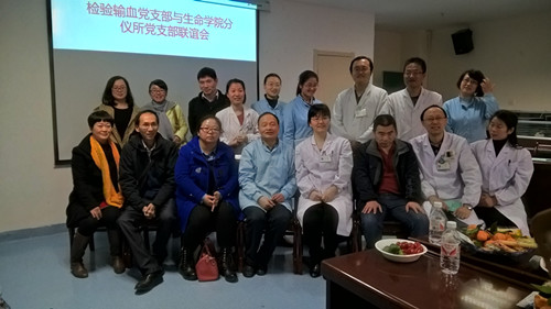 参观活动结束后,两个支部的老师们在会议室进行了座谈联谊。首先王刚书记代表检验输血党支部欢迎参加活动的全体人员,他介绍了科室的总体情况及科研工作,希望双方老师借这次支部活动的平台实现相互了解,最终促成学科建设和科研的相互合作。接下来分仪所朱键教授介绍所里的整体情况,回应王刚书记提出合作的愿望,指出两个单位要加强交流,强调理论研究和实验室研究用于实践才是唯一出路。紧接着田中民教授和翁国军老师分别汇报了各自的研究工作及目前遇到的一些问题,希望检验科的老师能够给予一些帮助。大家就双方关心的实际问题开展了热烈的讨论,一致认为两个单位在科研工作的很多方面都有共同关心的问题,在今后的工作中加强联系和合作,一定会有优秀的成果涌现出来。最后分仪所支部书记李剑君老师总结发言,感谢检验输血科党支部的热情接待,希望双方在以后的科研工作中能有更多交流合作的机会。联谊活动在友好的气氛中圆满结束,这是生命开元分仪所教工党支部创建“五好”示范党支部的系列活动之一。先前和生命开元院办支部和研究生支部举办的联谊活动,也取得了良好的效果。这些活动的开展,有利于增强全体党员的先进意识,增强党支部的创造力、凝聚力、战斗力。