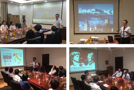 5月23日,新丝绸之路大学联盟成立之际,生命科学与技术开元与意大利都灵大学对接交流活动在生命开元举行,生命开元徐峰副院长主持交流活动,田中民教授、张虎勤教授、卢晓云教授等十位教师及十位研究生代表和人居开元李志刚教授、杨晗孜老师参加了交流。都灵大学校长代表Emilio Hirsch教授介绍了都灵大学的悠久历史和发展现状,特别介绍了都灵大学在生命科学领域的研究情况。