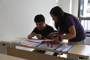 正在参加创新港体验周活动的张博同学也参与到研究生工作室的布置当中,摆放椅子、给绿植浇水、开窗通风,虽然都是小事,但他却投入了十二分的用心。他说,“能够参与到创新港建设中,特别是能够亲自布置未来的工作室,我深刻体会到了作为交大学子的一份责任,宽敞明亮和设施齐全的物理空间也激励我们在这里书写青春最美的篇章”。