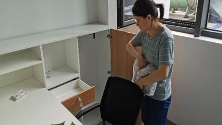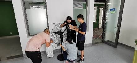 为改善研究生工作室和宿舍的环境,值班人员每天开门开窗通风,每间研究生工作室摆放空气净化器和工业风扇,研究生工位和宿舍都摆放了绿色植物、活性碳包,邀请专业公司做空气净化,提升空气质量,将安全摆在创新港建设的第一位。
