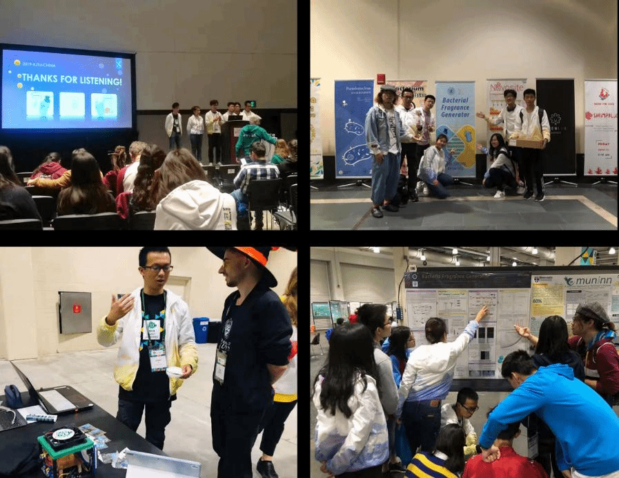 在不到一年时间内,队员自行设计基于光控开关的基因电路,实现了两种气味分子的光控选择性合成,并通过建模对其效果进行了仿真模拟。更为可贵的是,利用3D打印技术制备了小型的智能家居气味发生装置,并开发了配套的远程可控的手机APP,可实现安全、清洁、高效的气味分子可控合成和释放。队员们还开展了一系列实践环节提升了生命科学和合成生物学在大众的认可度,促进了人文精神的传播。队员们在麻省理工开元比赛现场通过wiki网页展示、海报和装置模型展示、汇报答辩等方式全方位地展示了项目的出色工作,得到了评委的一致好评。