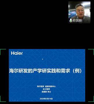 俞国新博士具有20多年家用电器技术研发和管理经验,他以“海尔研发的产学研实践和需求(例)”为题,介绍了海尔研发模式和体系,特别是在开放创新模式下的全球化研发布局和以用户为中心的体验迭代式研发模式,以及海尔集团和高校在联合创新中心平台上取得的技术突破、成果对接。俞博士详细介绍了海尔在智能家电中传感器技术、智能芯片技术研发的需求。他还建议要注重培养学生的创新能力,对毕业生求职面试提出了有效建议。