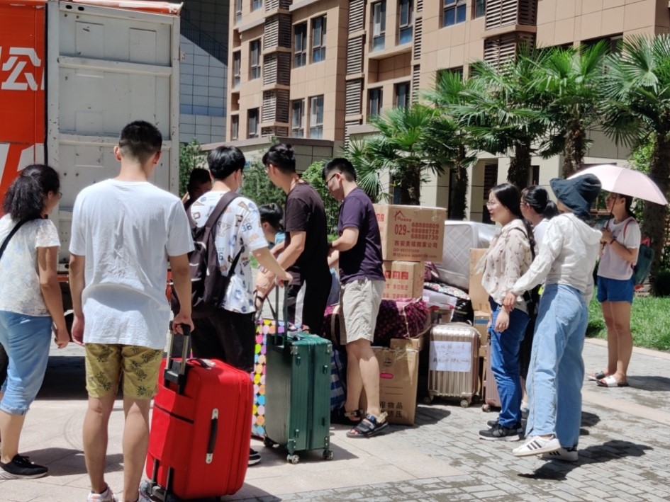 实验室搬迁的同时,线粒体所也为同学们宿舍的搬迁做好了后勤保障工作。老师们专门为大家准备了校车,帮助同学们搬运行李,以便顺利入住创新港开展后续科研工作。搬迁当日,大家井然有序的按照相关安排,将打包好的行李搬运上校车。已经在创新港学习生活了一年的的19级学生则在港等待着大家的到来,并积极帮助师兄师姐搬运行李,展现了线粒体所帮互助的优良品德。