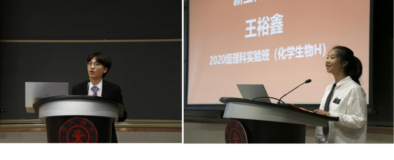 2020级化生班王裕鑫作为新生代表发言。她表示,作为最年轻的交大人,要志存高远、担当使命,脚踏实地、精勤求学,开拓创新、努力提高自身综合素质。