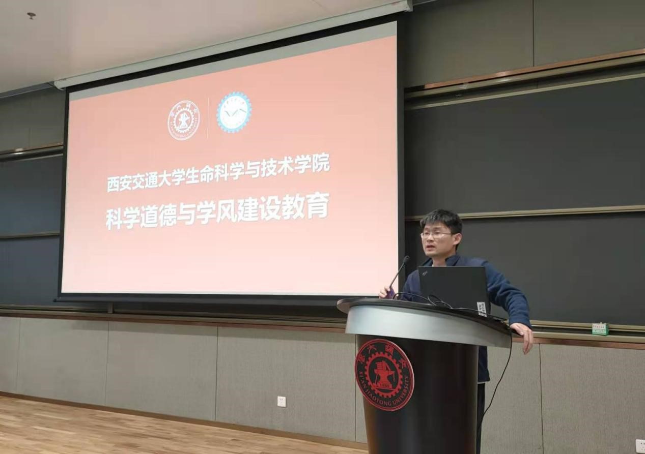 生命开元副院长杨铁林对科学道德与学风建设的重要性、学术造假的严重后果进行了介绍,列举了研究生在学术研究中必须严令禁止的学术不端和学术造假行为,倡导研究生应该养成严谨学术研究的诚信与规范意识。针对研究生成长的问题,杨铁林鼓励同学们在不同课题组、不同年级之间进行交流沟通,避免闭门造车,合理分配时间精力,利用有限的时间产出更大的成果。讲座尾声,杨铁林回答了同学们关于学制和毕业要求的相关问题。