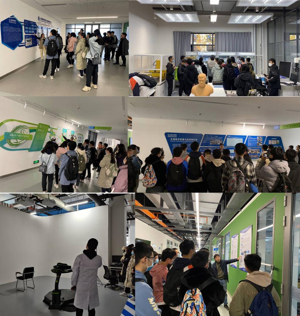 在创新港泓生楼内,本科生依次参观了五个研究平台及下设研究所和研究中心。深入了解了各个平台的研究方向、研究内容、研究成果及研究人员情况。带领同学们参观实验室的仪器、整体环境和部分研究成果。在参观过程中还对同学们关心的专业知识问题给予解答。