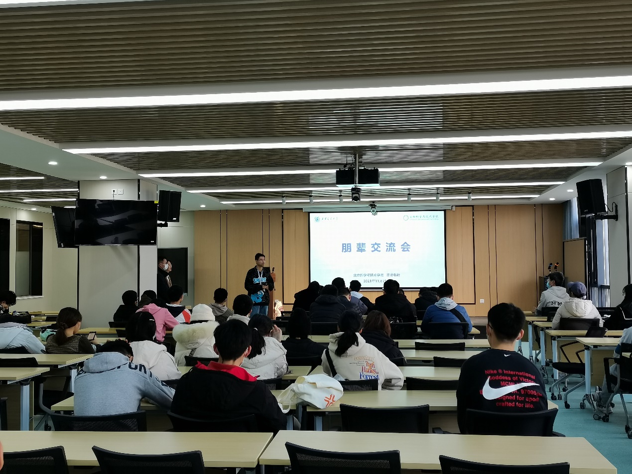 参观结束后,全体参观学生与生命开元研究生代表开展朋辈交流活动。研究生针对本科生提出的大学生活规划、专业选择、课外学习内容等问题进行逐一解答。博2142班褚寒冰从自身学习经历出发,鼓励同学们多参加科研实践活动,在实践过程中提升个人能力,在实践中找到自己所热爱的方向。