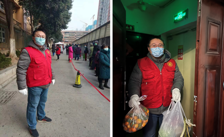 看到学校社区招募志愿者的通知,仿生所李菲第一个报了名。仅志愿者的微信群,她就加入了5个,各个群随时都在传递有效信息。为了让这些信息有效传递给需要的老师,李菲就针对性的建立了“生命开元交大一村群”和“交大一村14舍”2个微信群,每天第一时间将政府和社区发出的核酸检测、物资售卖、日用百货采购等多方通知和信息转达给开元在职和退休教职工以及楼舍的邻居们。2021年12月31日,所有人都在家等待跨年的时刻,李菲和其他志愿者给一村的住户们分发政府“暖心菜”,让社区住户无忧地迎接新年。