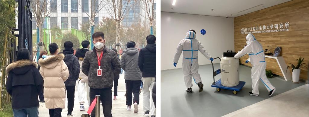 学生管控初期,由于老师们都不在港,居住在创新港的刘灏就配合开元开展研究生和实验室管理。学生全员参加核酸检测,刘灏就站在宿舍区门口指挥有序排队检测,穿上防护服,刘灏就带着学生用手推车将实验用液氮运送到各实验室。忙完这些,他回到家里吃饭已经是晚上九点多。