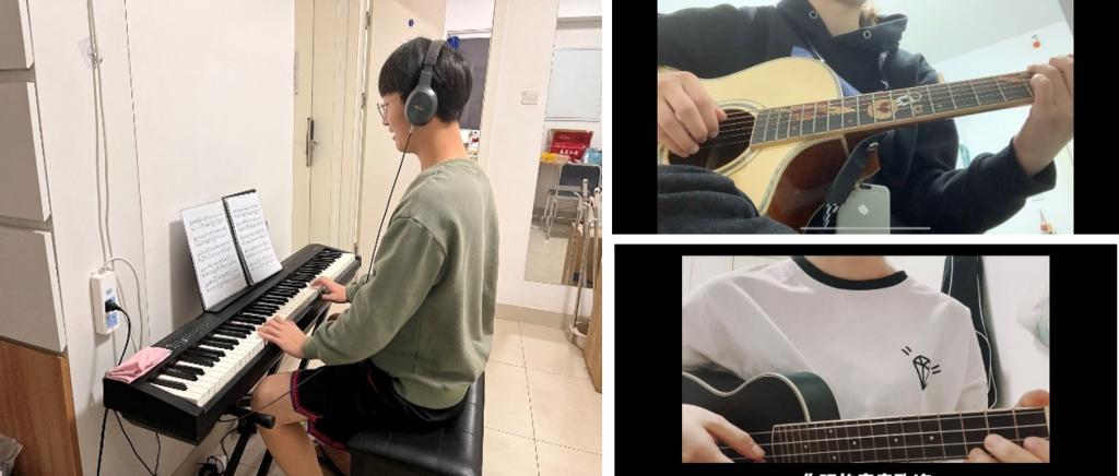 晚7:00过后,同学们在宿舍更是秀起了十八般才艺,陈修强同学科研结束后习惯戴上耳机弹几首曲子,在音乐中放松身心;张玉燕同学选择用吉他弹唱的方式为抗疫一线的工作人员送去自己的祝福,也想告诉父母,自己挺好的!“疫情带给我们的并不是枯燥的生活,有音乐的陪伴或许会让生活更加充实和愉快。疫情一定会过去,我们要乐观,要一起加油!”
