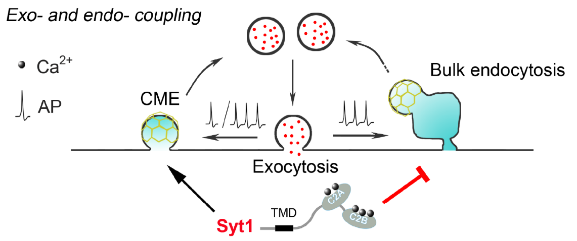 图1.突触传递过程中Syt1对胞吞的双向调控作用
