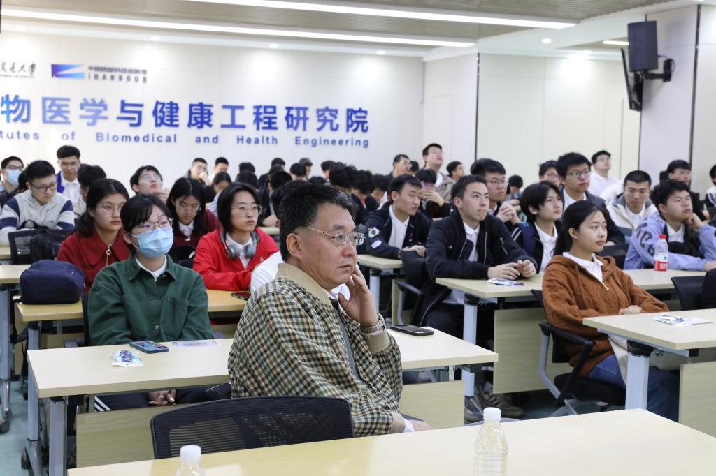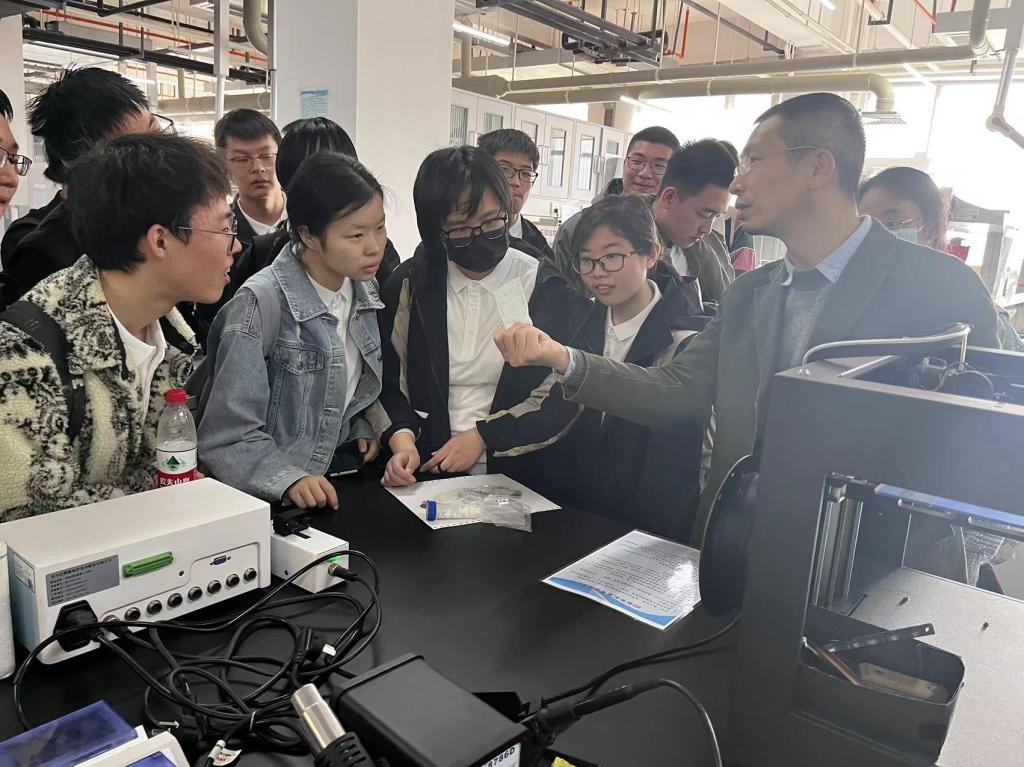 在班主任、本科生导师、研究生志愿者的带领下,同学们参观了生物医学与健康工程研究院,各系所中心教师为学生细致地讲解实验仪器和取得的科研成果等。“在医学健康大背景下如何进行数据挖掘?”“这个研究的应用场景是什么样的?”同学们对研究院的各类科研方向产生极大的兴趣,参观途中与老师和研究生学长学姐展开深入交流。