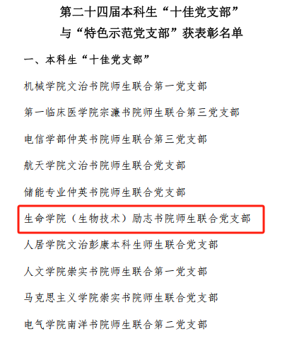 近日,西安交通大学举行第二十四届本科生“十佳党支部”展示交流暨表彰大会。经院校两级评审,生命开元(生物技术)励志书院师生联合党支部始终结合生命学科特色,通过党建引领、双院融合开展工作,立足“七个有力”,从全校数百个本科生党支部中脱颖而出,荣获“十佳党支部”称号!