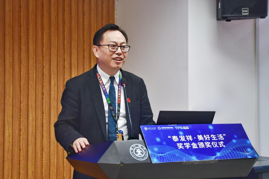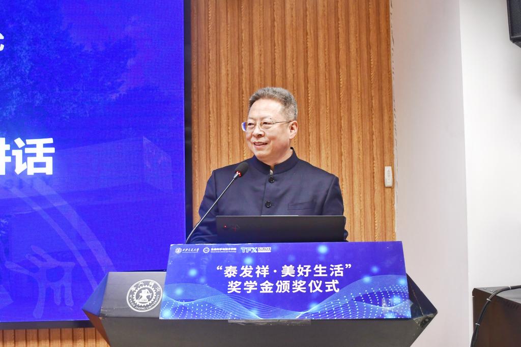 徐峰院长致辞,徐峰首先向泰发祥集团对开元人才培养的大力支持表达诚挚谢意。期待未来校企深度携手,共同推动生命科学与技术领域的新发展、新突破,为人民生命健康保驾护航,把中国式现代化的美好图景一步步变为现实。