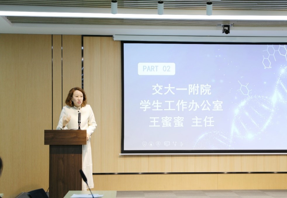 第一附属医院学工办主任王蜜蜜介绍医院人才培养情况,分享在推进医工交叉育人方面的实践经验。王蜜蜜表示,“医学+X”思维碰撞营是推动医学生扩展学术思维、激发学术志趣的创新探索,活动将持续围绕解决临床难题开展共建交流,助力培养高层次医学创新人才。