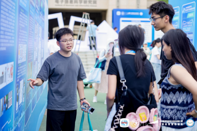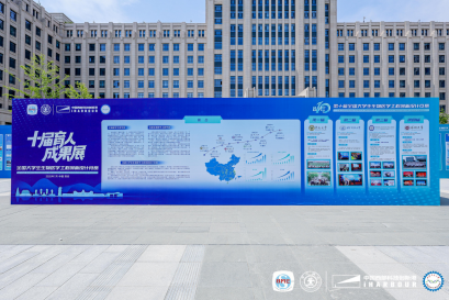 大赛同期创新性地举办了十届育人展、高校风采展和项目展。育人展回顾了历届承办高校在推动学科交叉、深化校企协同育人、培养创新人才方面的举措与成效,展示了历届获奖作品转化为实际应用的成功案例,彰显了大赛在促进科技成果转化、推动产学研深度融合方面的显著成效。高校风采展汇集了40余所高校在人才培养、科学研究等方面的先进经验。项目展上,566支决赛队伍通过海报形式展示参赛项目,直观呈现青年学子的创新成果与实践能力,搭建了跨学科、跨文化交流的窗口。