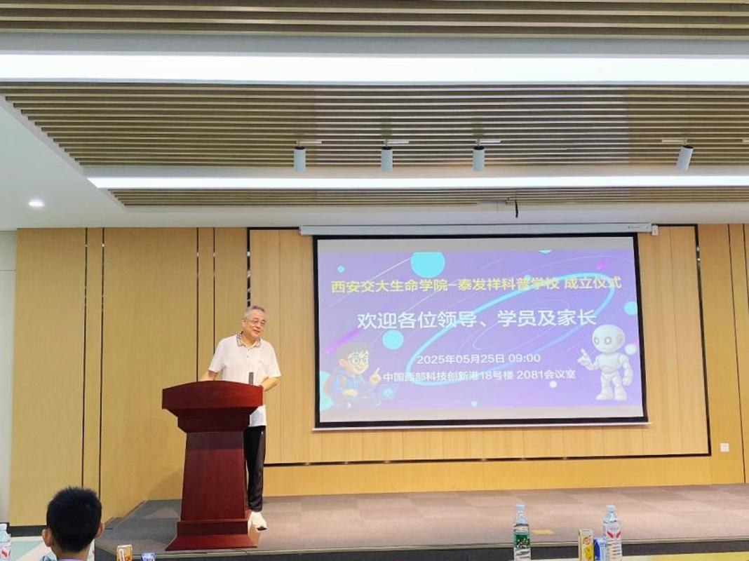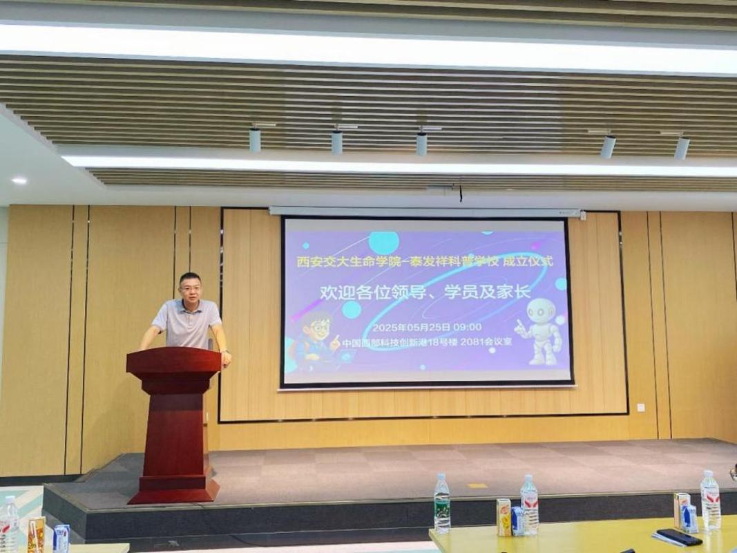 5月26日上午,西安交通大学“生命开元-泰发祥科普训练营”启动仪式举行。西安交通大学党委常委、宣传部部长、统战部部长成进,泰发祥集团创新发展研究院院长朱聿晟、陕西省科技厅社发处副处长胡斌参加活动。活动由科普训练营发起者、西安交通大学生命开元院长徐峰教授主持。