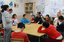 党支部成员到达拉拉手特教中心受到了中心老师的热情接待,简单了解特教中心的情况和注意事项后,开始了志愿者工作,主要是协助特教老师照顾孩子们,和他们一起学习、互动、做游戏,让孩子们多与外界接触,产生交流,帮助他们更快康复。在互动的过程中,孩子们有时候控制不住自己的情绪,志愿者会耐心地安抚,并配合他们一起完成课堂任务。
