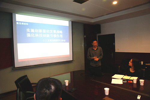 支部书记宗瑜瑾老师向全体党员转达了近期学校关于“两学一做”学习活动的会议精神,以及系列讲话的精神。随后是本次组织生活会的重头戏——“微党课”环节,支委会预先将学习内容梳理成为八个主题,包括“两学一做”学习教育、学习新党章,做合格党员、李克强政府工作报告学习体会、解读“工匠精神”——李克强政府工作报告学习、坚持全面从严治党、实施创新驱动发展战略,强化科技创新引领作用、“十三个五年”规划纲要学习体会和科技创新是引领发展的第一动力。党员各自选择一个主题,于会前自主学习、收集资料、制作PPT学习报告,在组织生活会上结合科研与教学工作,发表学习体会,全体党员就每个主题进行了讨论。