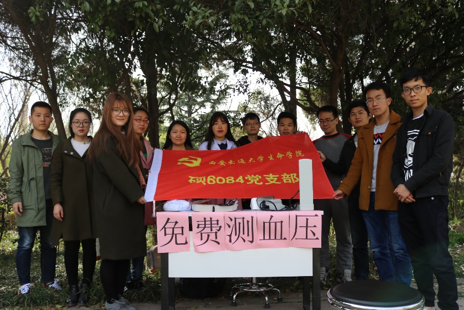 我院硕6084班党支部开展“服务校园,关注血压”免费测血压活动