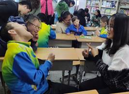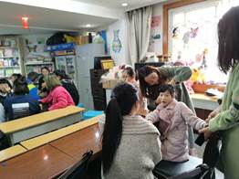 党支部成员到达阳光家园后,受到了家园老师的热情接待和欢迎,家园的石老师为大家讲述家园的情况以及孩子们的基本情况。据了解,西安市莲湖区星星残疾人阳光家园是由少数民族人士开办,服务于各民族智力障碍人士的一所综合阳光家园,主要提供日间照料、夜间托养、康复训练、技能培训等。其服务对象的90%都是单亲家庭,80%由孩子的母亲照顾,同时还收养了几名孤儿与事实孤儿。石老师生动地讲述着十年来一个又一个孩子们的故事,深深感动了志愿者,让志愿者们更加认识并且了解他们。孩子们特别的单纯,开心就是真的开心,这些年老师们是老师,是保姆,也是父母,在照顾关爱孩子们的同时,孩子们也影响着老师们,给老师们带来了感动。