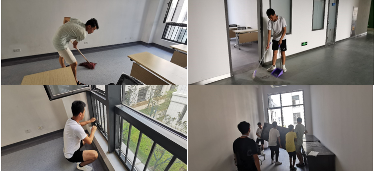 9月7日,生命开元2019级研究生新生党员来到创新港18号泓生楼,布置研究院临时办公室和教师备课室。党员同学们分工明确,相互配合,摆放擦拭家具、地面清洁、门窗缝隙清理等,为即将开始的创新港教学周做最后的准备。志愿服务,党员先行。作为第一批入驻创新港的新生党员,他们用实际行动诠释初心和使命。