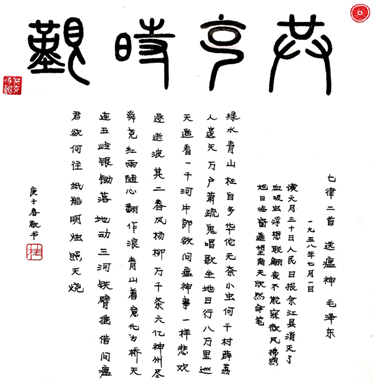 支部党员积极参与以艺战“疫”,用自己的笔墨致敬在一线奋战的英雄们,书写“共克时艰”以及脍炙人口的《七律二首·送瘟神》。其中,其二描写新中国的劳动人民在社会主义制度下,精神振奋,斗志昂扬,战胜瘟神,征服自然,使祖国出现欣欣向荣的景象。而在今天,有以习近平同志为核心的党中央的坚强领导,有不畏艰难、奋勇向前的医护人员以及全国人民的共同努力,一定能够取得抗疫战争的最终胜利。