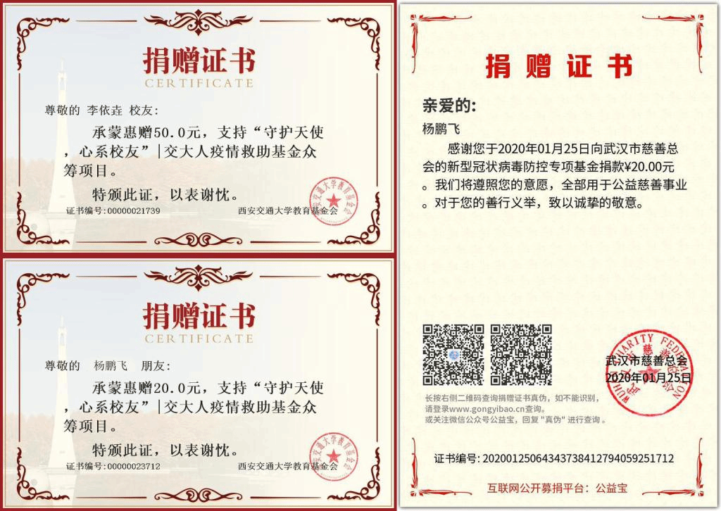 同时,按照生命开元分党委《关于党员自愿多交党费支持新型冠状病毒疫情防控的温馨提示》文件的要求,在不到1天的时间,经认真核算支部党员上交的特殊党费达到840.6元,为平时每月支部党费总额度的135倍。在此之前,还有部分党员弘扬爱国主义、集体主义精神,积极向西安交通大学教育基金会、武汉市慈善总会等慈善机构和民政部门捐献爱心。