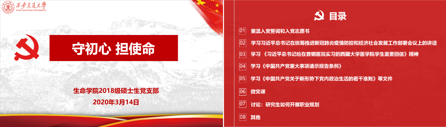 2018级硕士生党支部于3月14日晚召开3月组织生活会,主题为“守初心,担使命”,通过腾讯会议线上方式召开,会议由党支部书记王祥桂主持,全体党员和入党积极分子参加。